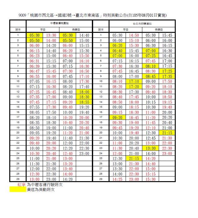 9009「桃園市西北區→國道3號→臺北市東南區」8/1起服務調整公告