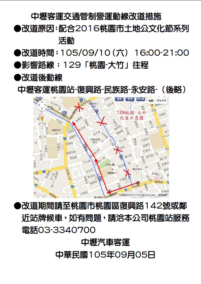 129路線配合2016土地公文化節改道公告