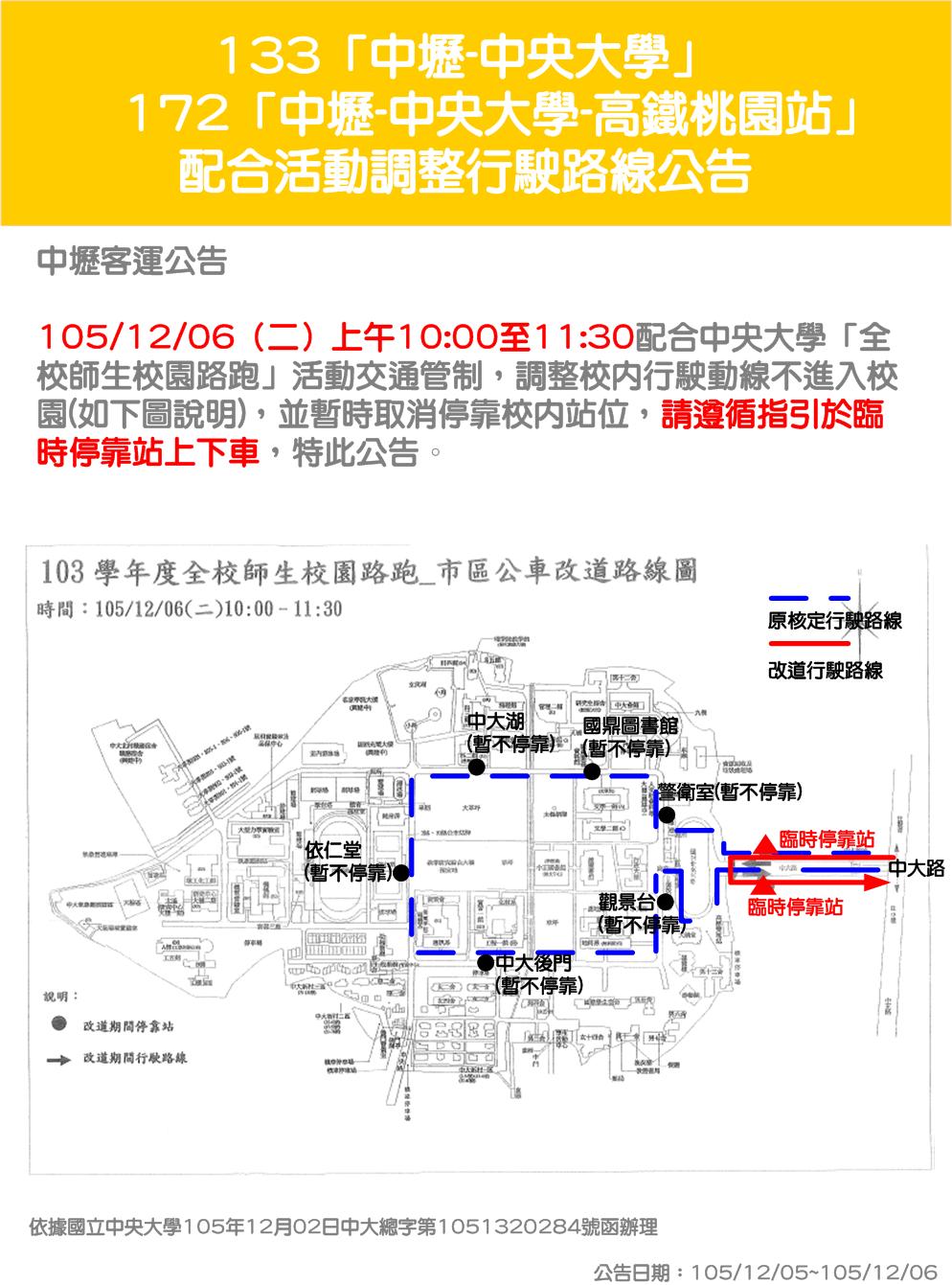 2015/12/05 133+172配合中央大學活動改道公告