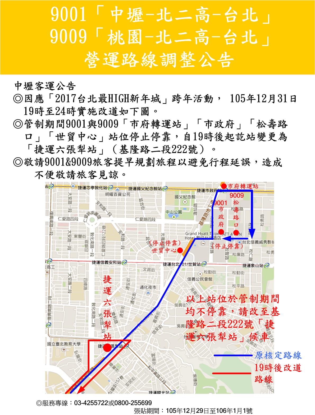 9001與9009配合跨年活動服務調整公告