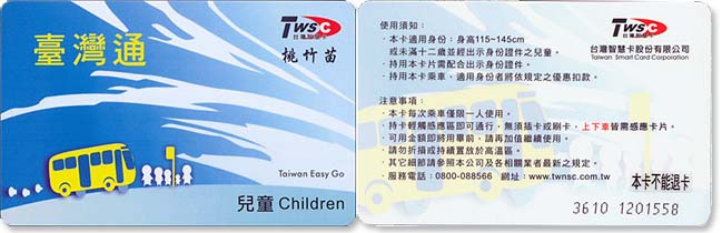 兒童卡:為不記名卡,若遺失無法辦理掛失,未滿12歲或身高115cm~150cm兒童,以半票計費,每張售價100元(卡片工本費)。